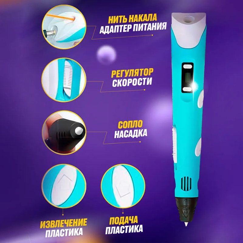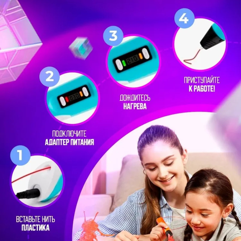 Откройте для себя удивительный мир 3D-моделирования, где ваши рисунки оживают! Эта 3D-ручка позволяет создавать объемные фигуры прямо в воздухе. Развивайте пространственное мышление, моторику и воображение. Идеально подходит для создания игрушек, украшений, предметов декора и даже для мелкого ремонта пластиковых изделий.